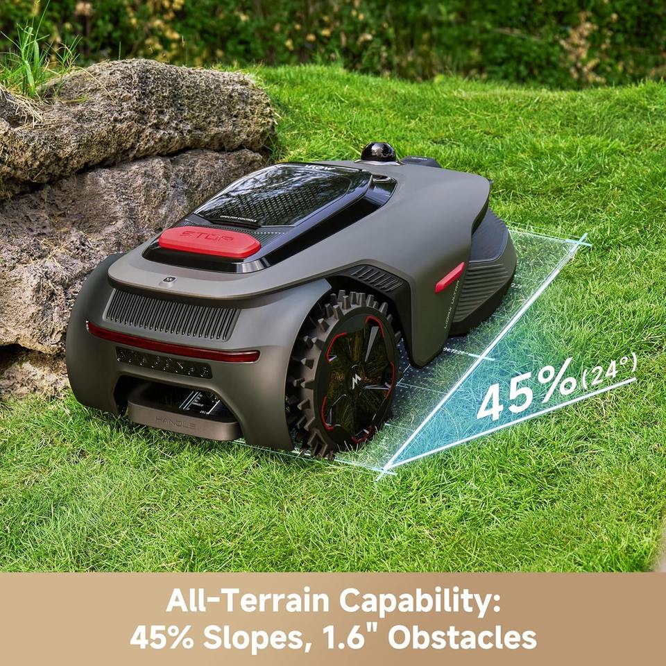 หุ่นยนต์ตัดหญ้าอัลตร้า 1000 ไร้สายสำหรับพื้นที่ 1/4 เอเคอร์, ระบบ RTK-Free+360 ° การสร้างแผนที่อัตโนมัติด้วย 3D LiDAR+AI Vision, การตัดแบบ Zero-Edge