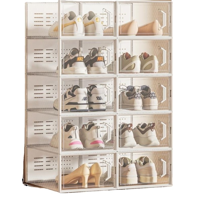 กล่องเก็บรองเท้าแบบใส Ultra 12 ชิ้น, กล่องจัดระเบียบรองเท้าแบบพลาสติกใส ซ้อนกันได้, ชั้นวางรองเท้าแบบพับได้ ประหยัดพื้นที่