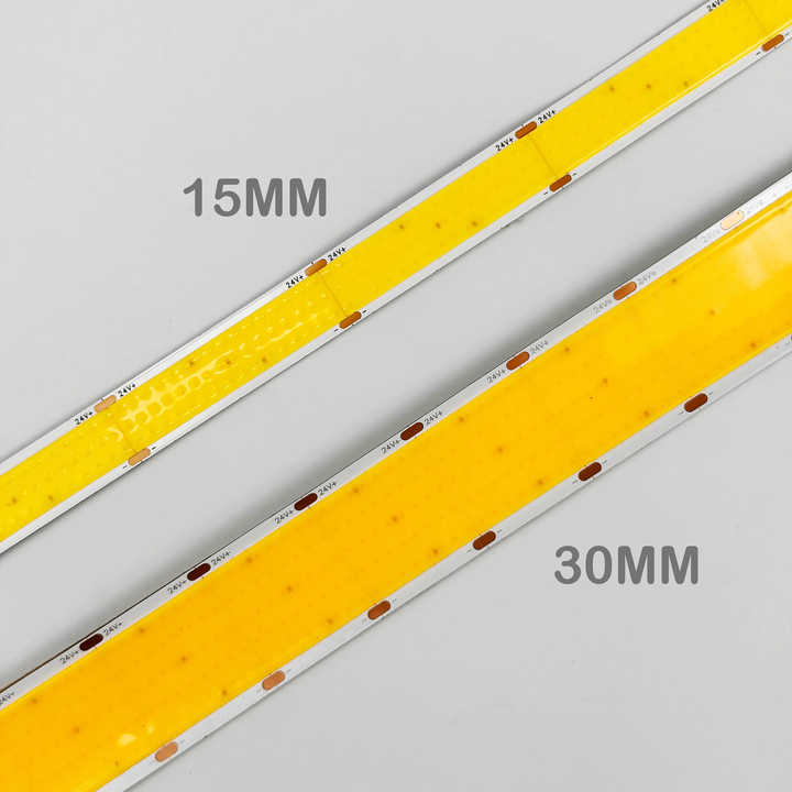 ไฟแถบ LED COB สว่างพิเศษ 24V ขนาด 15 มม. 30 มม. ความกว้าง 960 หลอด LED/เมตร 1600 หลอด LED/เมตร แถบไฟ LED IP20 ความหนาแน่นสูง