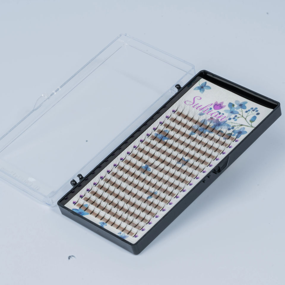 ขนตาปลอมสีด้านเข้มพิเศษขนาด0.07-0.15มม. 4D ก้านสั้นที่ผลิตไว้ล่วงหน้าสำหรับต่อขนตาปริมาณโรงงาน