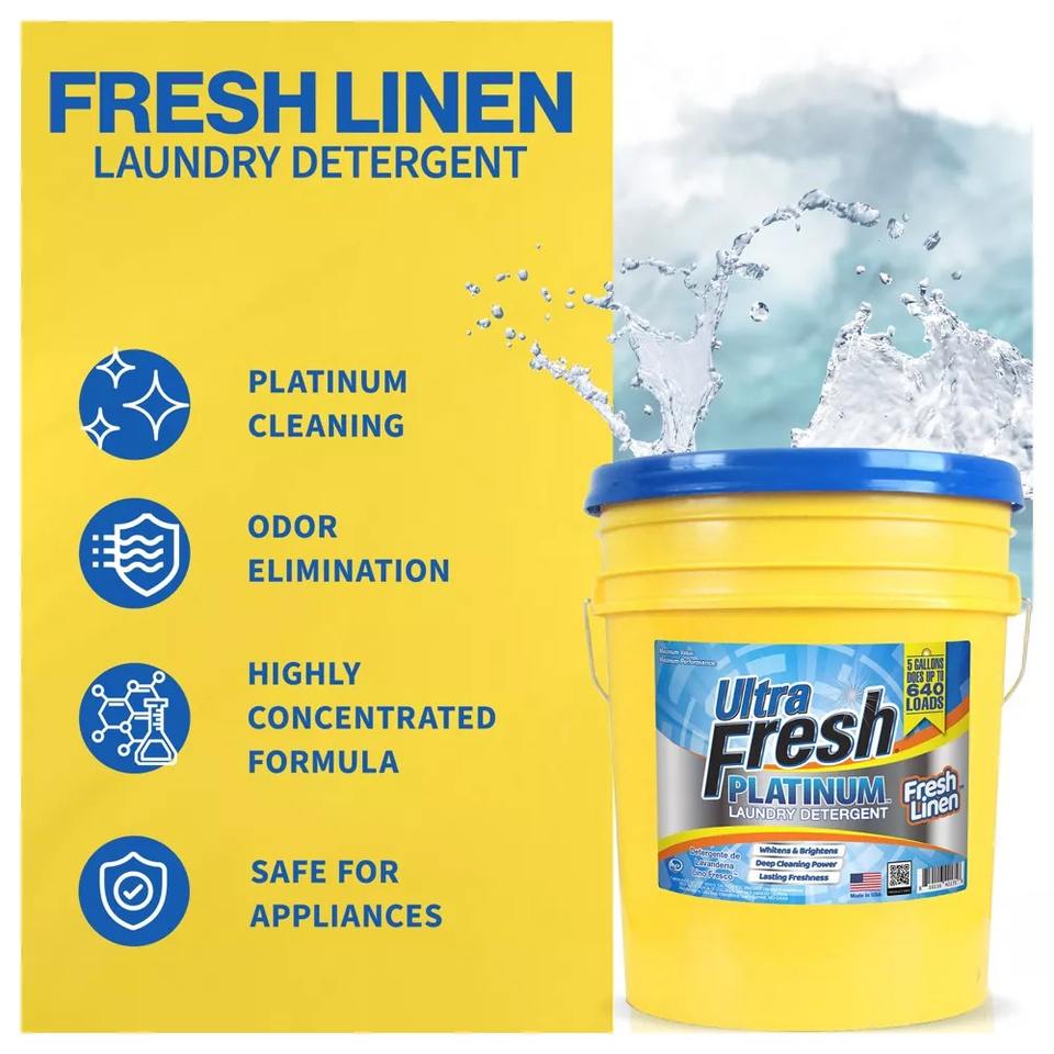 น้ำยาซักผ้าอัลตร้าเฟรช แพลตตินัม 5 แกลลอน ซักได้ถึง 640 ครั้ง กลิ่นผ้าหอมสดชื่น