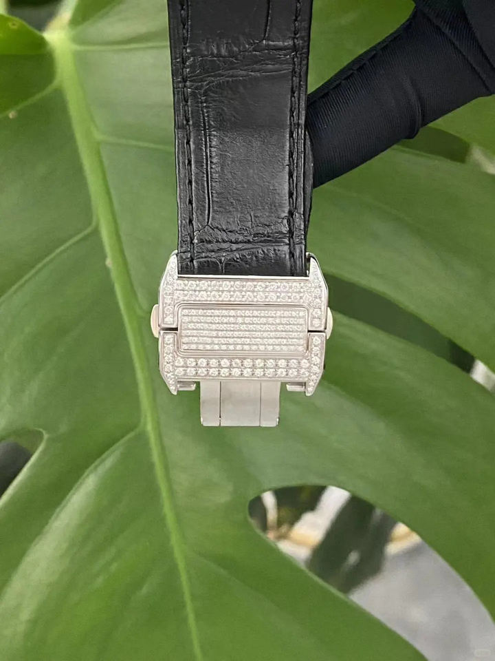 อัลตร้ากลิตเตอร์นาฬิกาน้ำแข็งเคสสี่เหลี่ยมพร้อมสายรัดคริสตัลเต็มรูปแบบหัวเปลี่ยนทั้งหมดบนประกายนาฬิกาสำหรับผู้ชาย