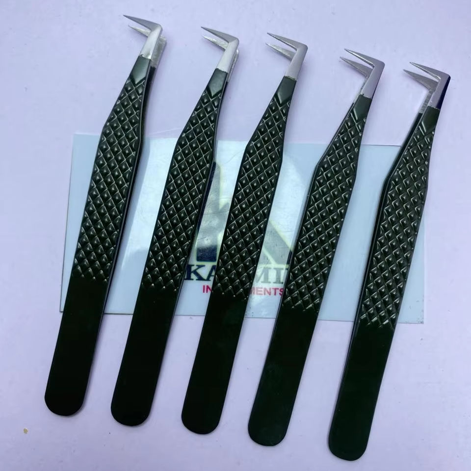 แหนบต่อขนตาสแตนเลสอัลตร้าไลท์ ดีไซน์ป้องกันความเมื่อยล้า ป้องกันแม่เหล็ก ด้ามจับสบาย ปลายเรียบ ยาว 10 มม. สำหรับร้านเสริมสวย