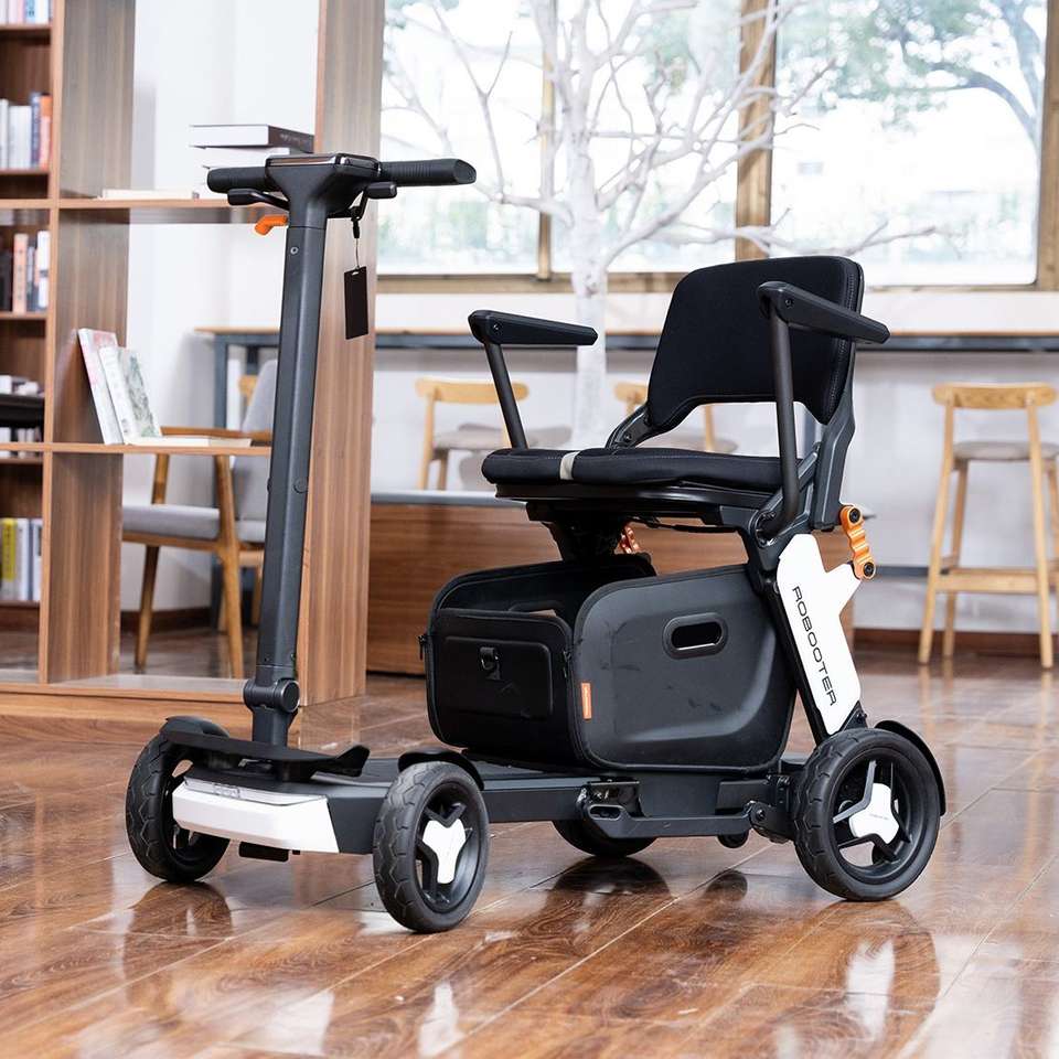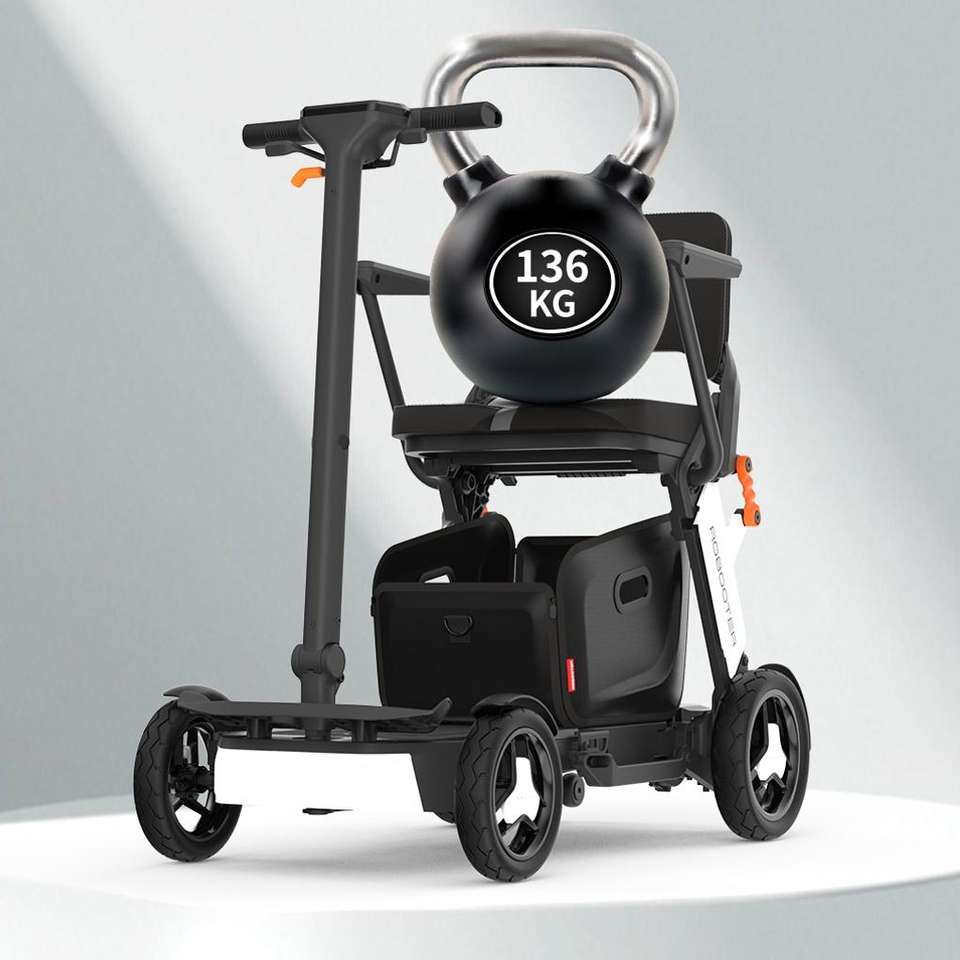 สกู๊ตเตอร์เคลื่อนที่สำหรับผู้สูงอายุแบบพับได้ น้ำหนักเบาพิเศษ ควบคุมผ่านแอพพลิเคชั่น แบตเตอรี่ใช้งานได้นาน พร้อมที่เก็บของใต้เบาะ 4 ล้อ
