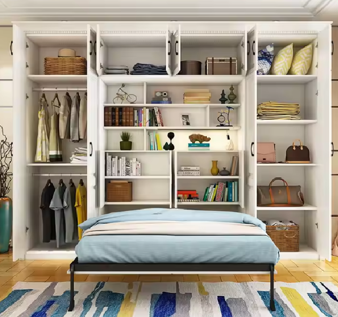 เตียงพับติดผนังแบบซ่อนได้ ดีไซน์ประหยัดพื้นที่ รุ่นอัลตร้าโมเดิร์น ขนาดทวิน/ควีน/คิงไซส์ ทำจากไม้ พร้อมตู้เสื้อผ้าในตัว