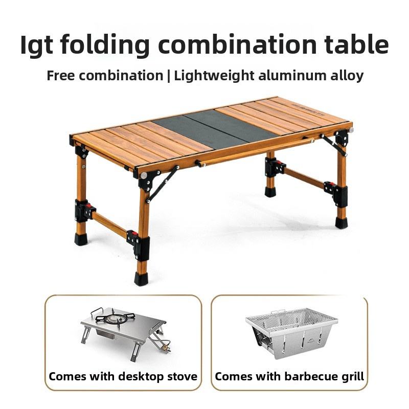 โต๊ะพับปรับระดับความสูงได้ พกพาสะดวก สำหรับตั้งแคมป์ ปิกนิก บาร์บีคิว โต๊ะ IGT สำหรับการตั้งแคมป์และการเดินทางด้วยรถยนต์