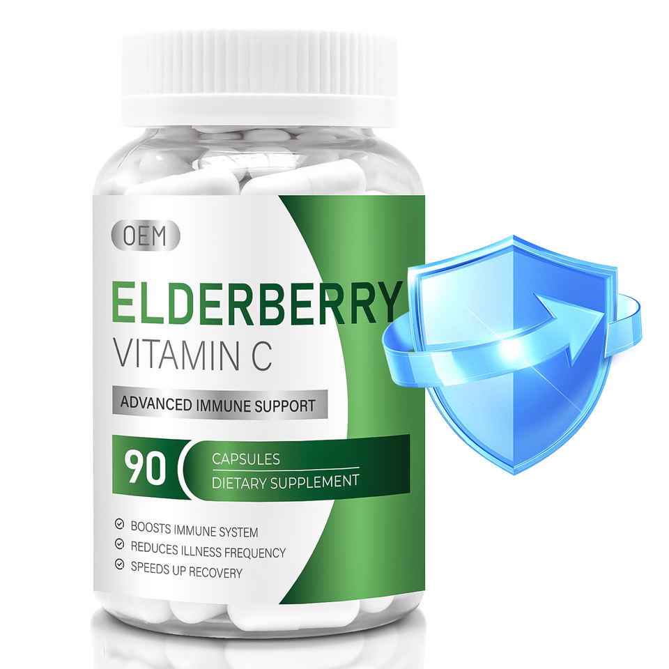 สารสกัดจากผลเอลเดอร์เบอร์รี่บริสุทธิ์พิเศษพร้อมวิตามินซี แคปซูลสารต้านอนุมูลอิสระสำหรับสุขภาพทางเดินอาหารของผู้ใหญ่และเสริมสร้างภูมิคุ้มกัน