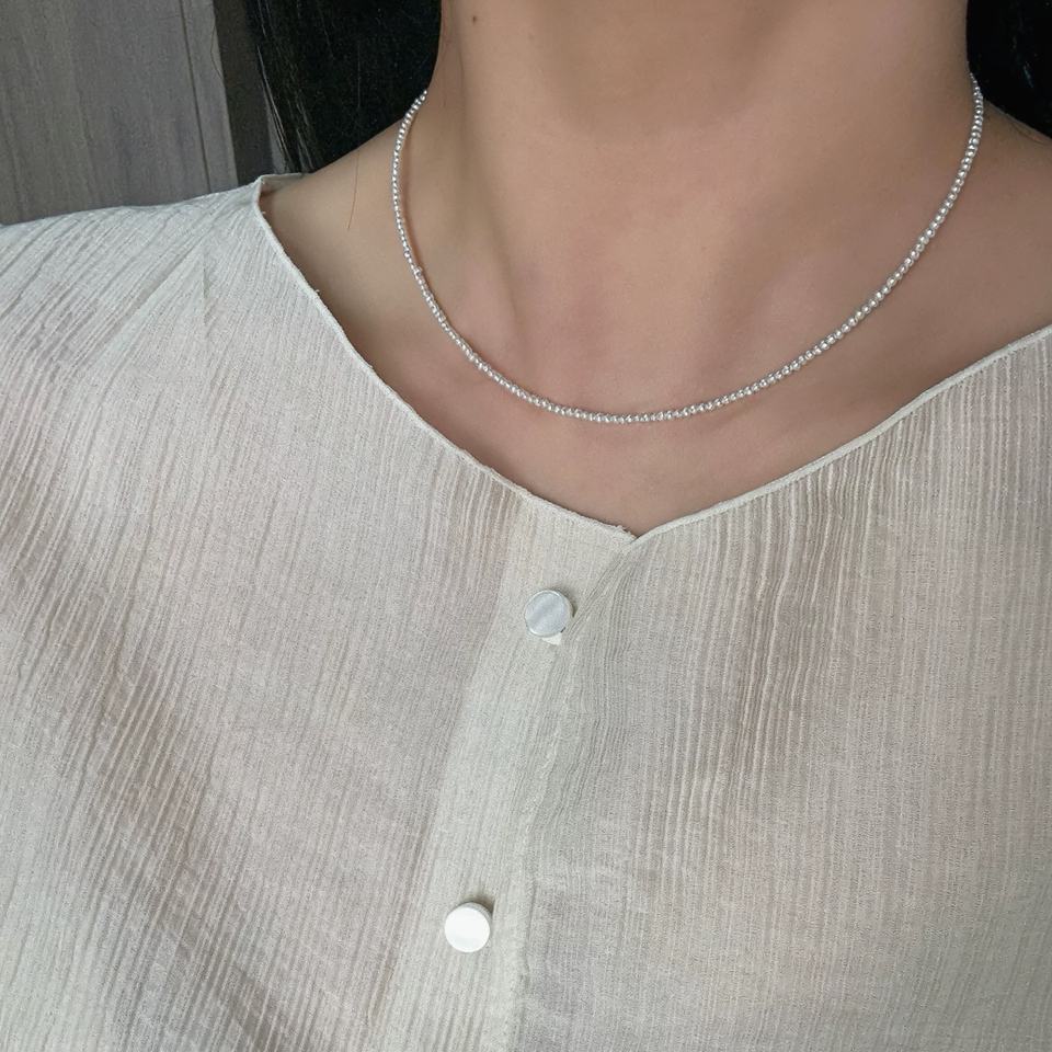 สร้อยคอมุกน้ำจืดธรรมชาติขนาดเล็ก 2 มม. หายากมาก สร้อยคอเงินแท้ S925 อเนกประสงค์ ดีไซน์สวยงาม