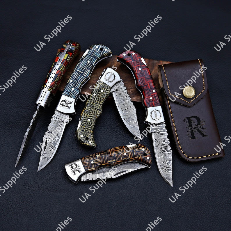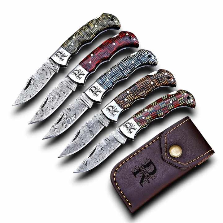 มีดพับสำหรับตั้งแคมป์กลางแจ้ง ทำจากเหล็กดามัสกัสแฮนด์เมด