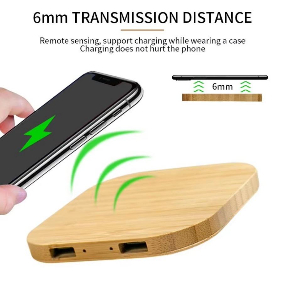 เครื่องชาร์จไม้ไผ่แบบ2 in 1, ที่ชาร์จไร้สายแบบพกพาขนาดเล็กบางเฉียบ