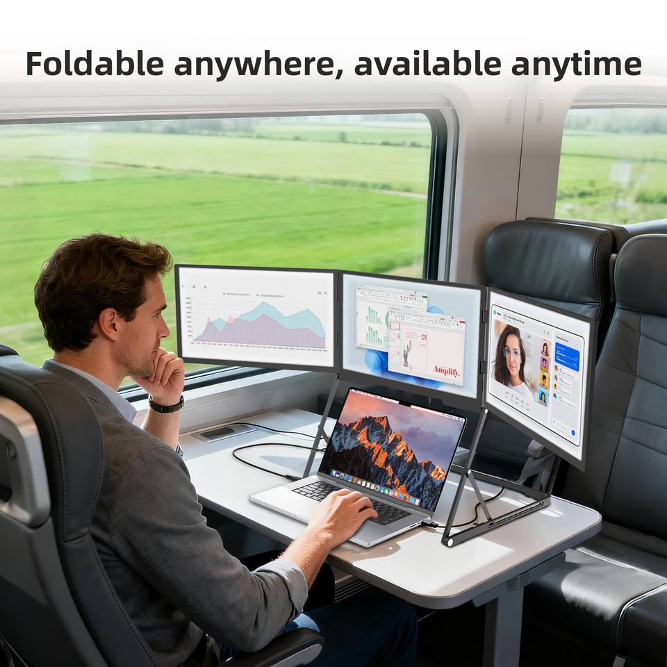 จอภาพพกพาแบบสามจอ ตัวขยายจอภาพอะลูมิเนียมเต็มรูปแบบ จอสี่จอขนาด 3×18.5 นิ้ว FHD 1080P HDR IPS USB-C และ HDMI รองรับแล็ปท็อปขนาด 11-18 นิ้ว