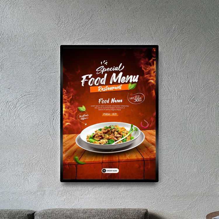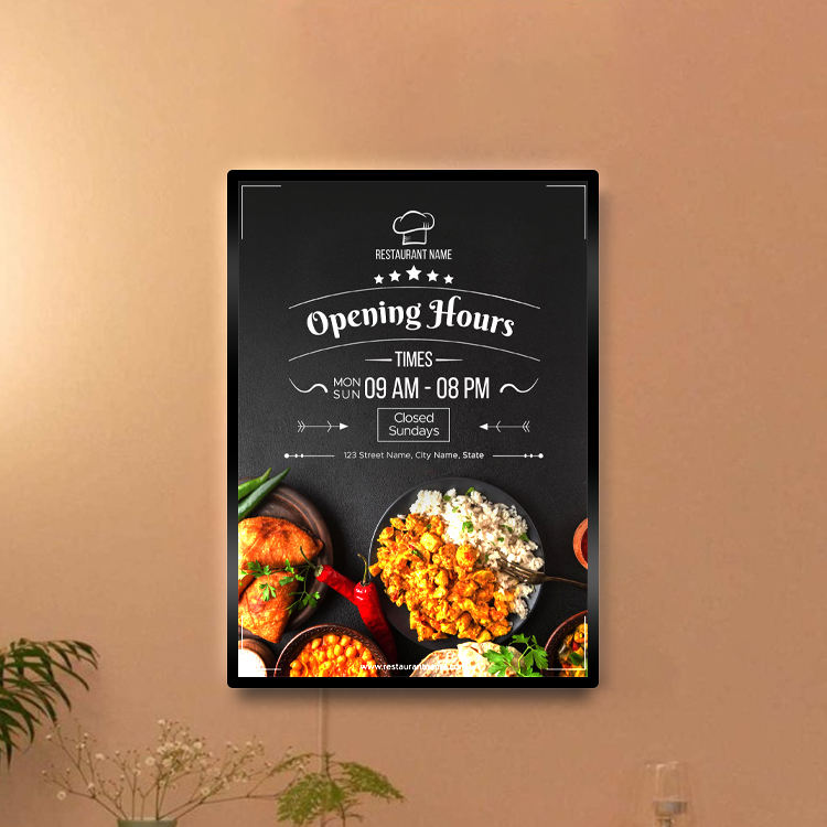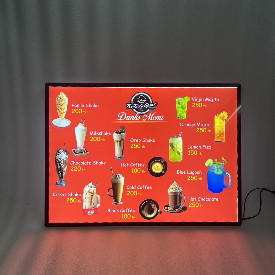 กล่องไฟ LED ทรงสี่เหลี่ยมผืนผ้า อลูมิเนียมบางเฉียบ ความหนา 11 มม. แสงพื้นหลังสว่างมาก เปลี่ยนโปสเตอร์และเมนูได้ง่าย