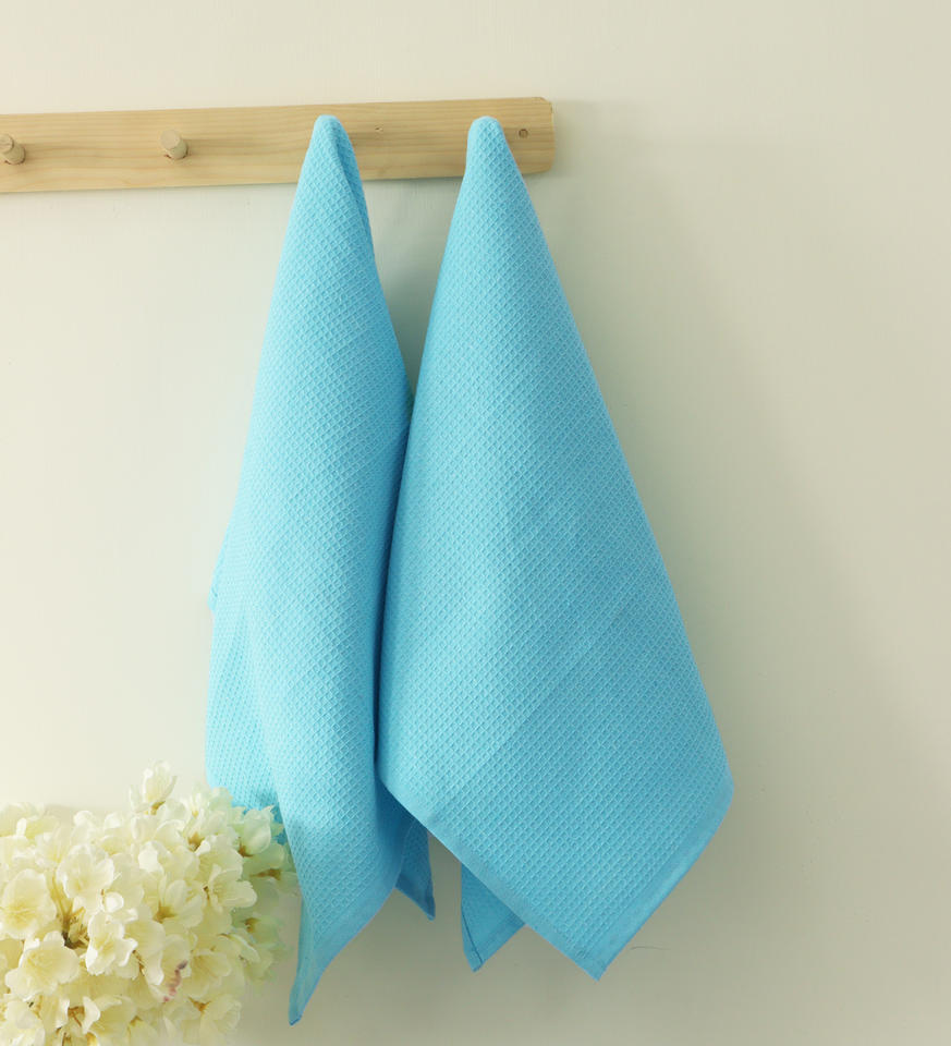 ผ้าวาฟเฟิลผ้าฝ้ายเนื้อนุ่มพิเศษสำหรับใช้ในห้องครัวผ้าเช็ดจานสีฟ้า15X25นิ้วใช้ซ้ำได้แบบใช้แล้วทิ้งแห้งเร็ว