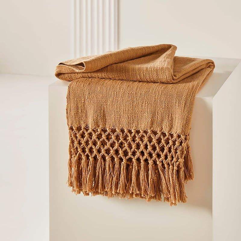 ผ้าห่มทอฝ้ายสลับลายพร้อมพู่ห้อยสำหรับโซฟา ผ้าห่มตกแต่งฝ้ายสลับลายทอมือพร้อมพู่ห้อย ผ้าฝ้ายสลับลายดีไซน์เนอร์
