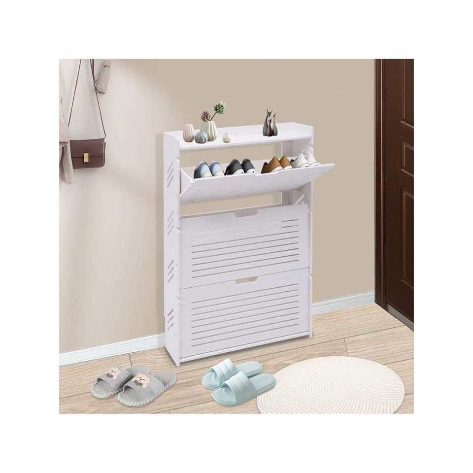 ตู้เก็บรองเท้า3ชั้นสีขาวทันสมัยทนทานชั้นวางรองเท้าแบบลาดเอียงสำหรับทางเข้า