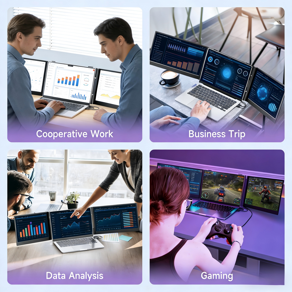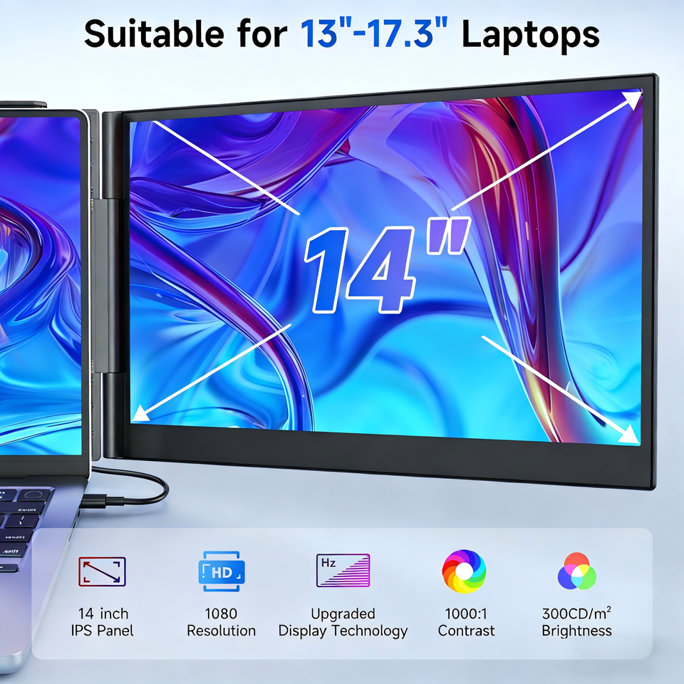 จอภาพพกพาแบบบางพิเศษ IPS ขนาด 14 นิ้ว ความละเอียด 1080P FHD น้ำหนักเบา รองรับการใช้งานแบบสามจอ สำหรับแล็ปท็อปขนาด 13-17 นิ้ว เหมาะสำหรับธุรกิจ