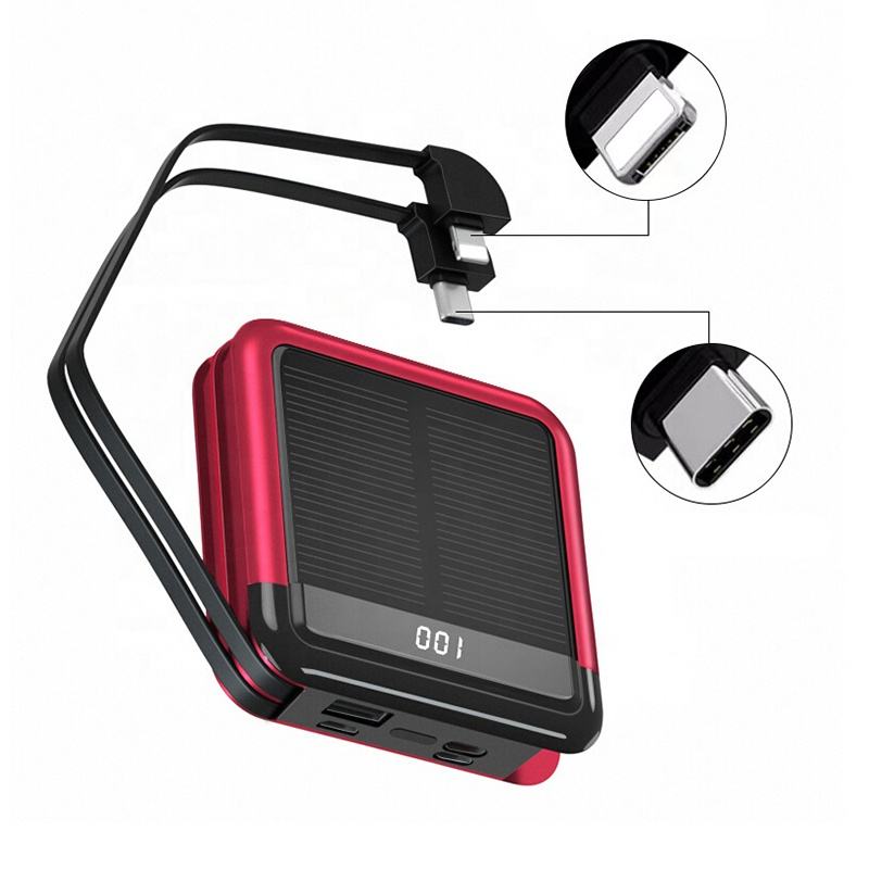แบตสำรองพลังงานแสงอาทิตย์ขนาดเล็กพิเศษ 10000 มิลลิแอมป์ พร้อมสาย USB คู่