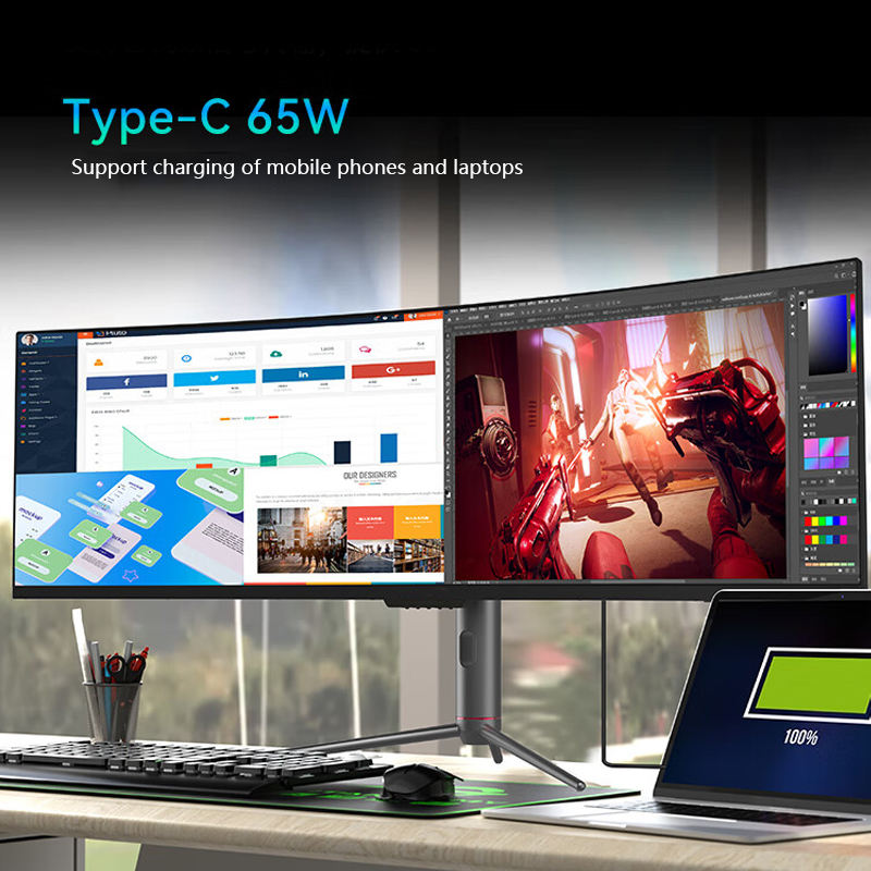 Ultra Wide 49-Inch 4K HDR Gaming Monitor Full HD 144Hz 32:9 Aspect Ratio Factory Price DP Interface Dual Speakers Curved Desktop