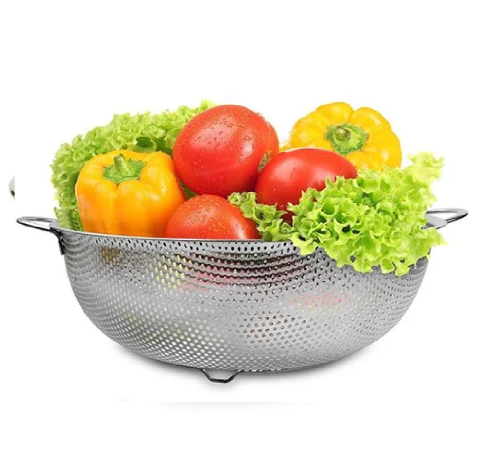 Ultra fine stainless steel colander precision perforations for rinsing delicate foods like grains available at wholesale prices