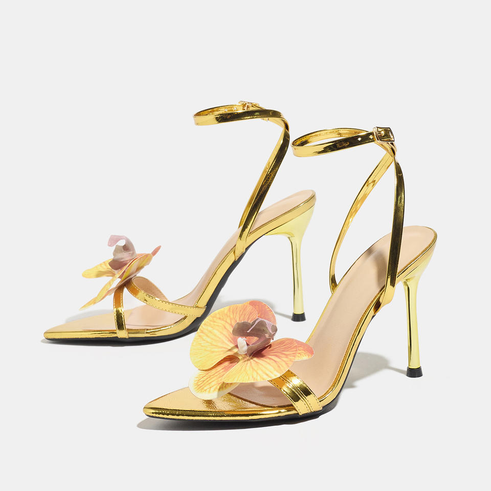 รองเท้าส้นสูงแบบยุโรปประดับดอกไม้ปักสามมิติสำหรับผู้หญิง แบบเปิดนิ้วเท้า ส้นเข็ม