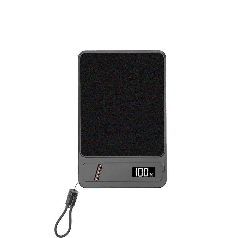 สายชาร์จไร้สายแบบแม่เหล็กโลหะบางเฉียบ 3-in-1 พร้อมสายคล้องคอ ชาร์จเร็ว 22.5W หน้าจอดิจิตอล แบตสำรอง 5000mAh
