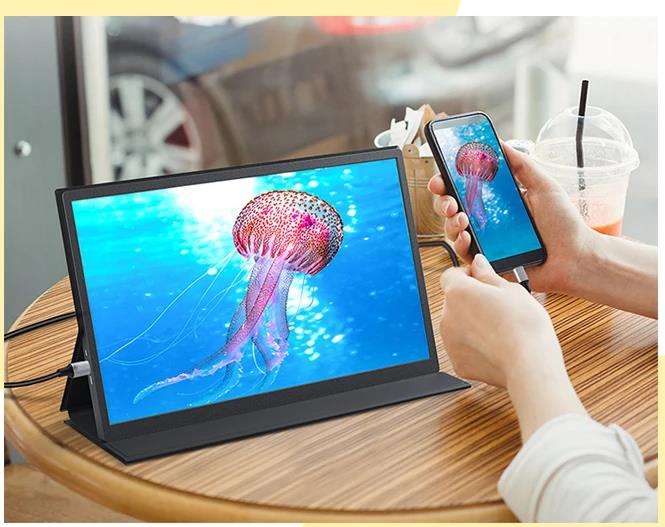 จอมอนิเตอร์แบบพกพาแบบบางเฉียบขนาด13.3นิ้วหน้าจอสัมผัสแบบ1920*1080P IPS แบบพกพา USB สำหรับแล็ปท็อปการเล่นเกม pohne