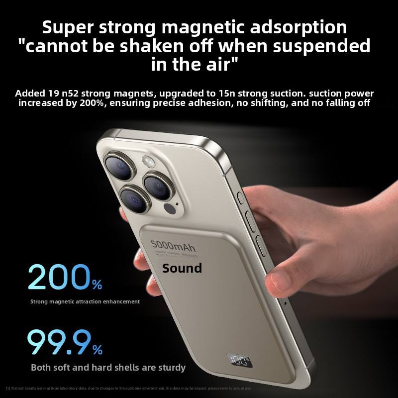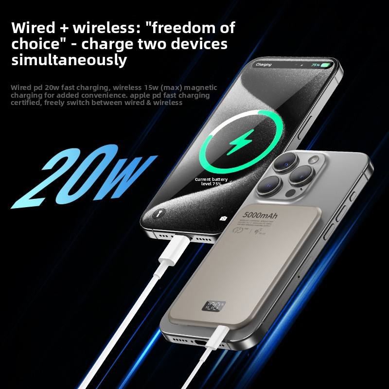 พาวเวอร์แบงค์แม่เหล็กไร้สายแบบบางเฉียบ 5000 mAh พร้อมหน้าจอดิจิตอล ตัวเครื่องอะลูมิเนียมอัลลอย รองรับ PD 20W ชาร์จเร็ว พกพาสะดวก
