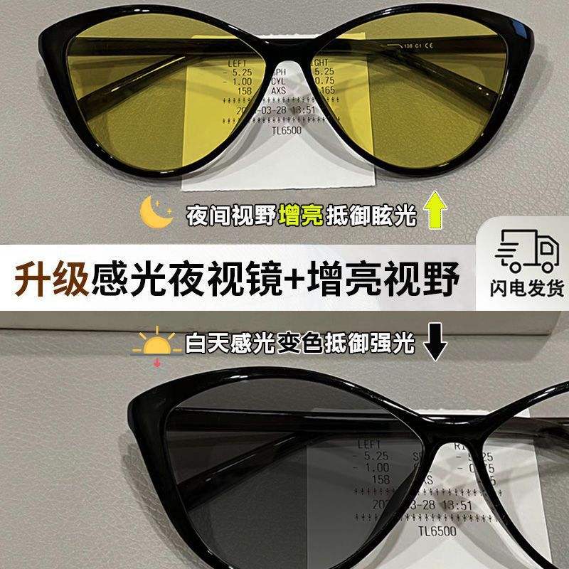 แว่นตาสายตาสั้นแบบ Ultralight Cat Eye กรอบ PC ค่าดัชนีการหักเหแสง 1.50 ป้องกันรังสียูวี เปลี่ยนสีได้ ป้องกันแสงสีฟ้า สำหรับผู้หญิง ใช้กลางคืน