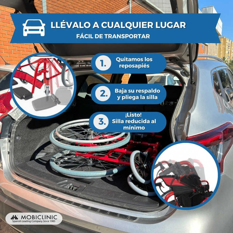 Mobiclinic รถเข็นคนพิการระบบเบรกคู่แบบแมนนวลพับได้พร้อมพนักพิงแบบแยกอลูมิเนียม