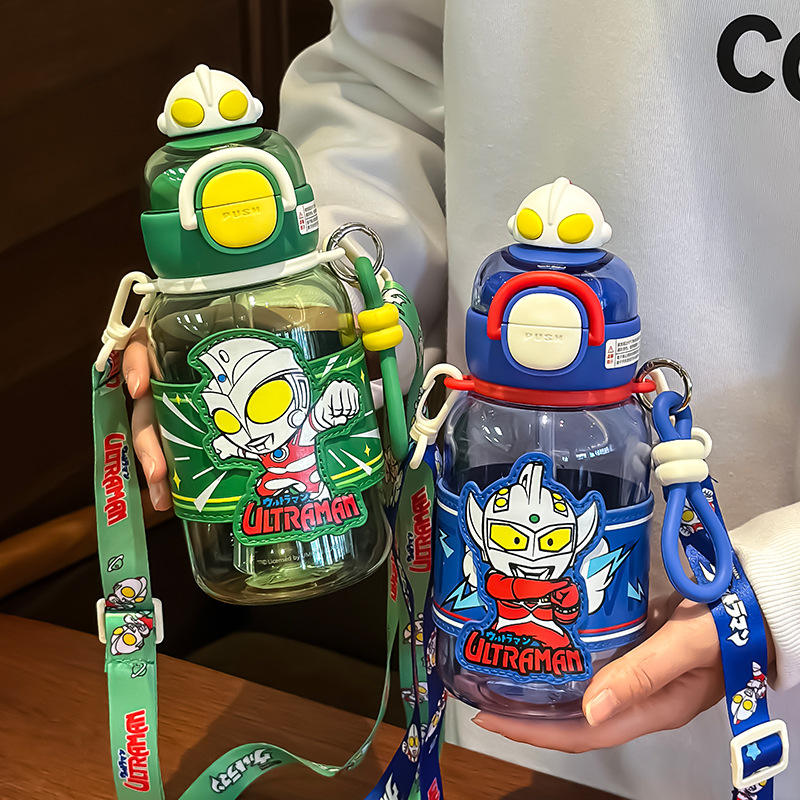 ขวดน้ำอุลตร้าแมนสำหรับเด็ก ใช้ในโรงเรียน ขนาด 500 มล. แก้วพลาสติกพร้อมสายสะพาย ลายการ์ตูน สำหรับเปิดเทอม ฤดูใบไม้ผลิ 2025