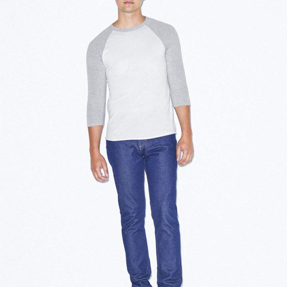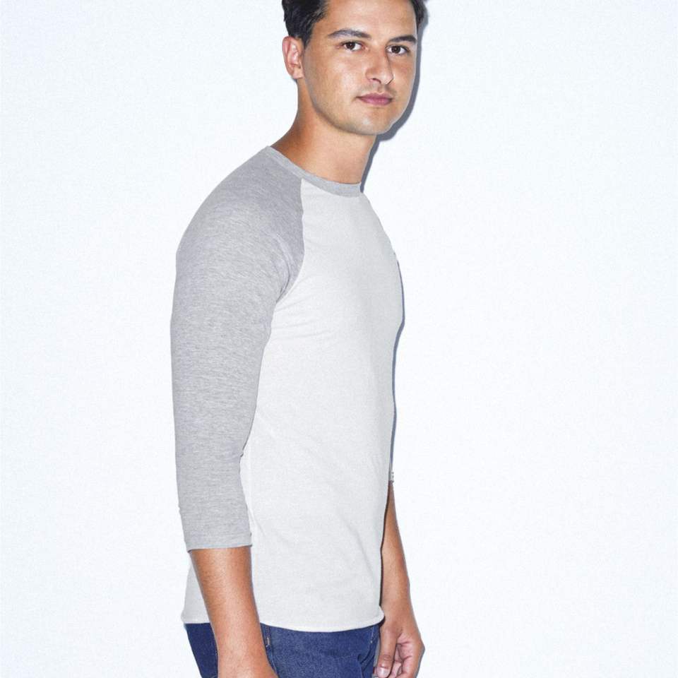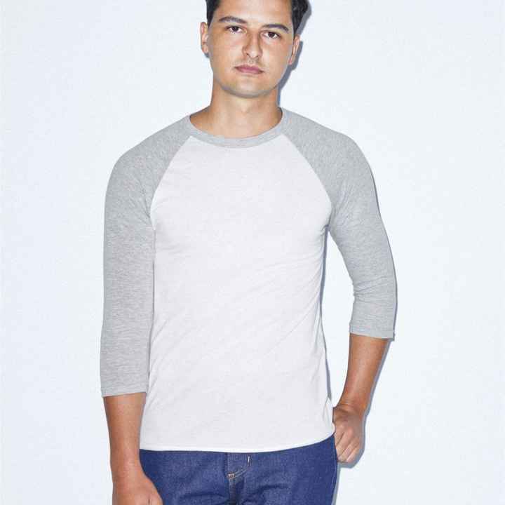 เสื้อยืดแขน3/4ผ้า50% ผ้าฝ้าย50% แบบบางน้ำหนักเบาสีขาวและสีเฮเทอร์เบสบอลสีเทาแร็กแลนแบบ200บางเฉียบ