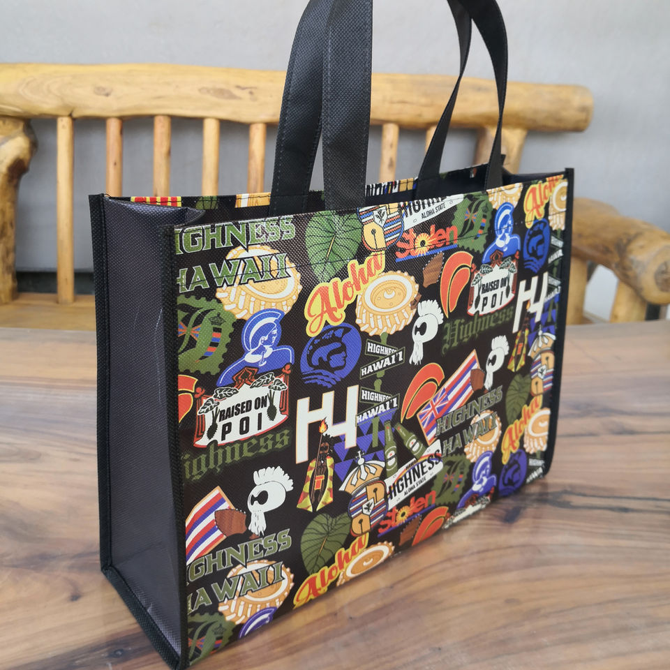 ถุงช้อปปิ้งแบบใช้ซ้ำได้ ผลิตจากวัสดุ PP รีไซเคิลเคลือบผิวแบบอัลตราโซนิก พิมพ์ลายตามสั่ง พร้อมโลโก้ตามต้องการ