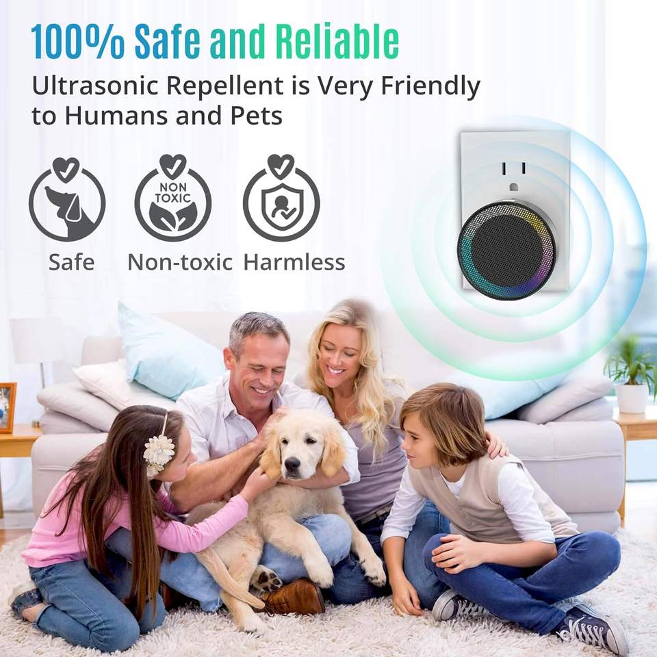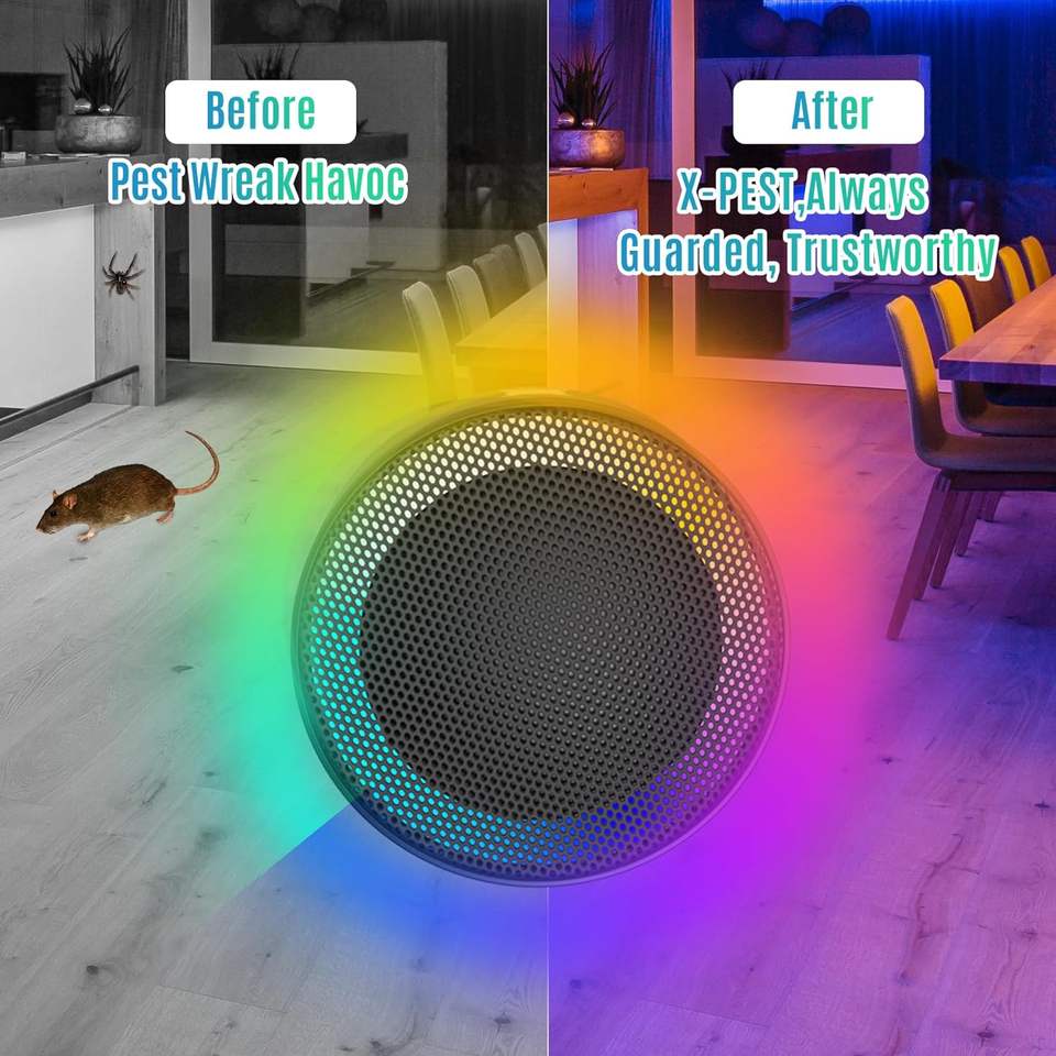เครื่องไล่หนูด้วยคลื่นอัลตร้าโซนิคที่มีไฟกลางคืน LED เปลี่ยนสีความถี่สูงปลอดภัยและเป็นมิตรกับสิ่งแวดล้อม