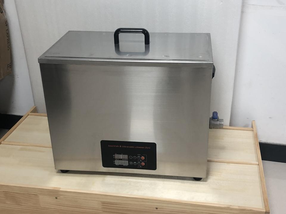 เครื่องทำอาหารซูวีแบบสั่นสะเทือนด้วยคลื่นอัลตราโซนิกสำหรับอุ่นทั้งภาชนะ ให้ความร้อนสม่ำเสมอ เพิ่มรสชาติ นุ่มละมุน ทนทานต่อการใช้งาน ขนาด 50 ลิตร สำหรับเชิงพาณิชย์