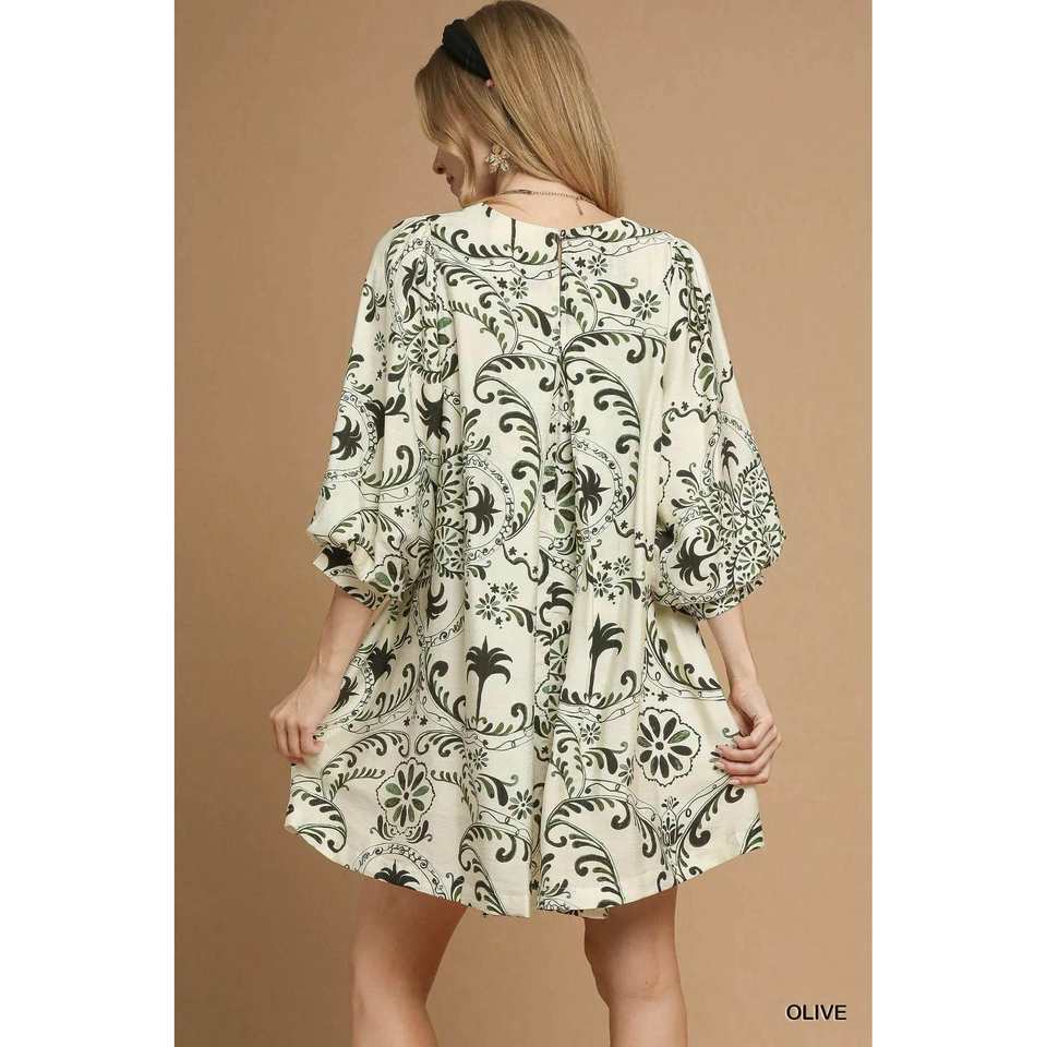 เดรสมินิพิมพ์ลายมินิเดรสแขนบอลลูน