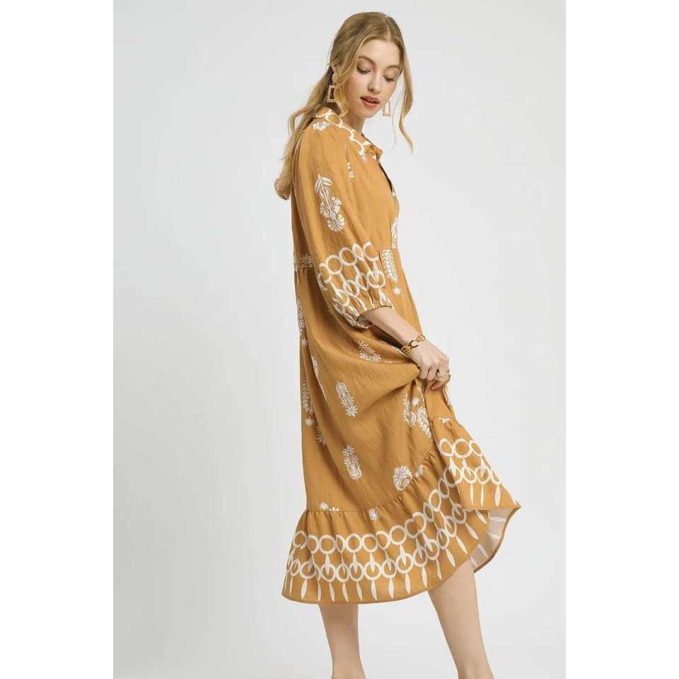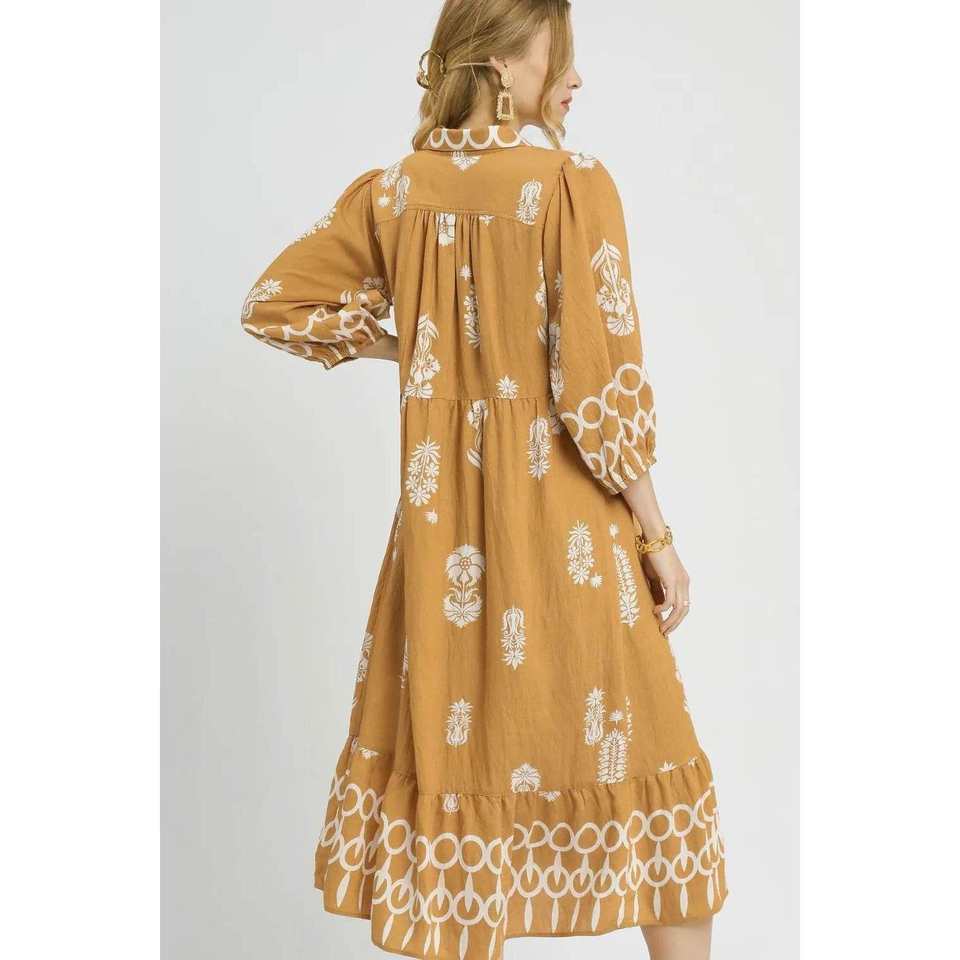 Umgee เดรสมิดิคอ johnny มีชายระบายและการออกแบบลายพิมพ์แตกต่างกันเติมเต็มด้วยมือ
