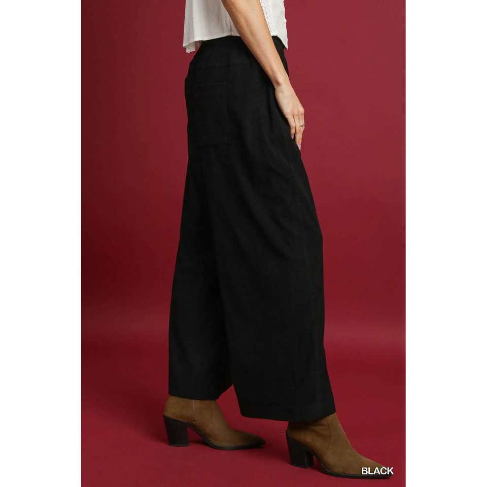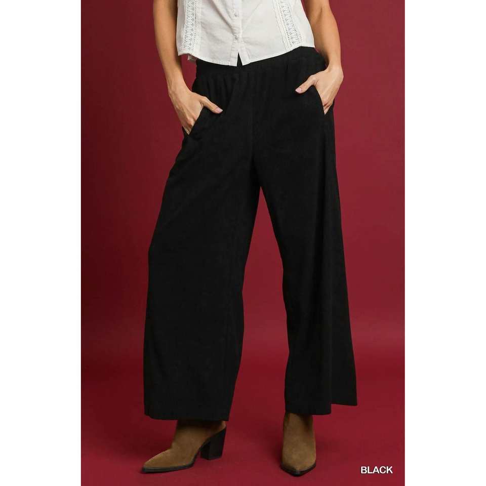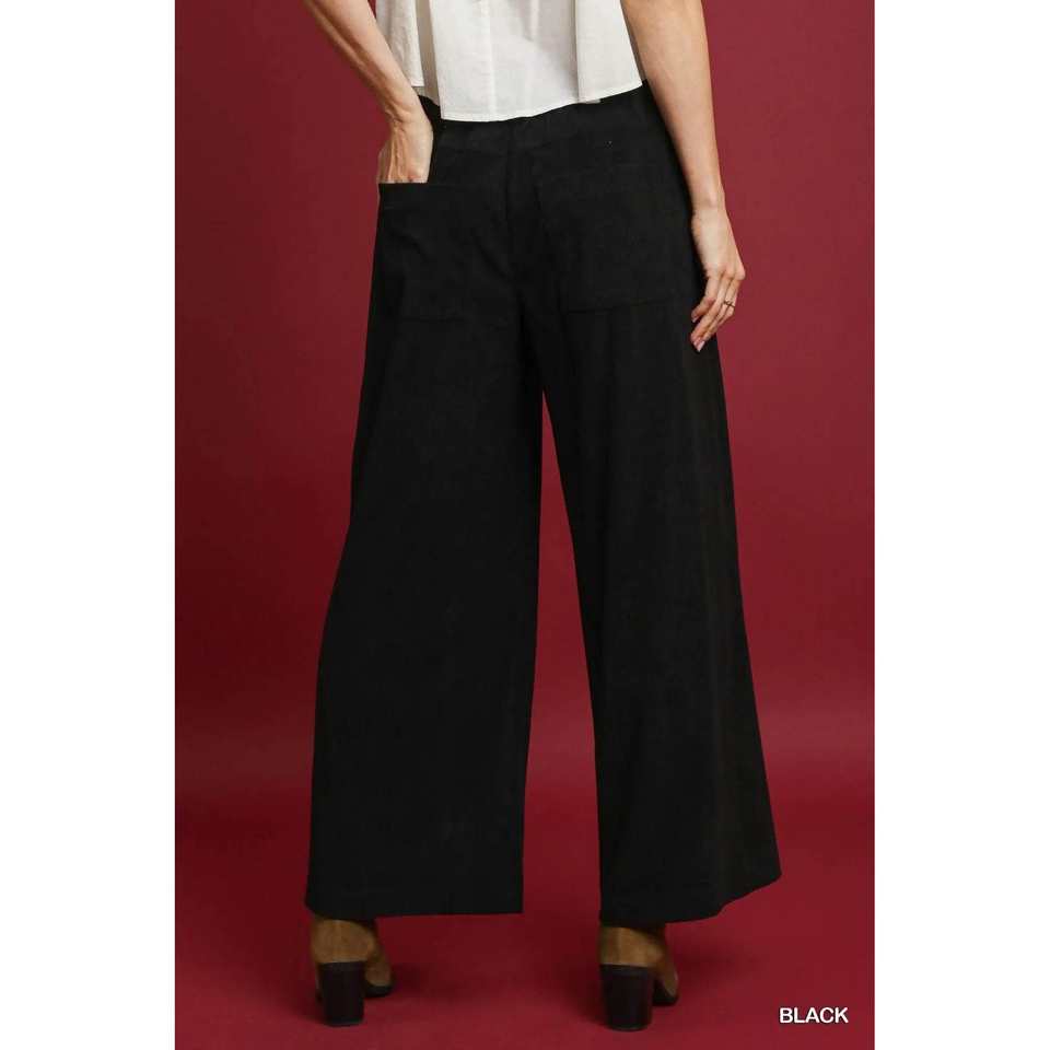 กางเกงผ้าลูกฟูกขากว้างสีดำสำหรับผู้หญิงอุมเก้
