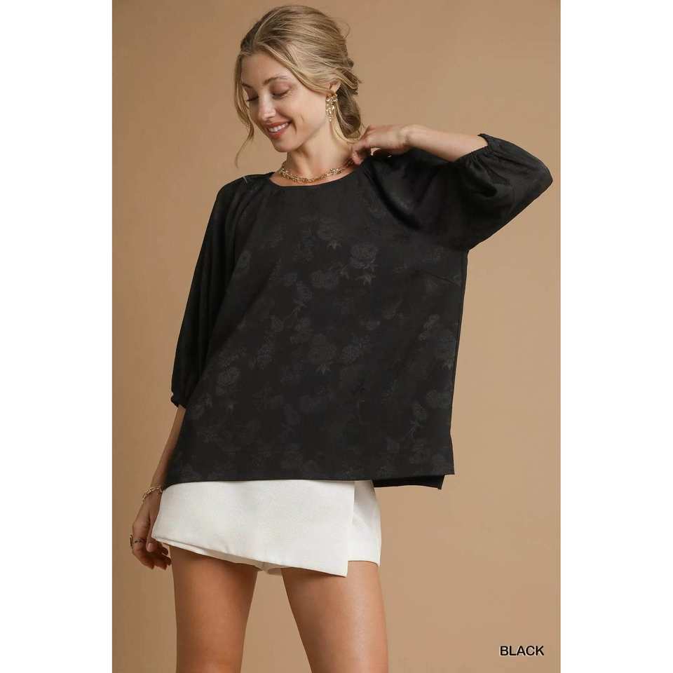 Umgee เสื้อสตรีแขนบอลลูนผ้าแจ็คการ์ดผ้าซาตินสีดำขนาด S