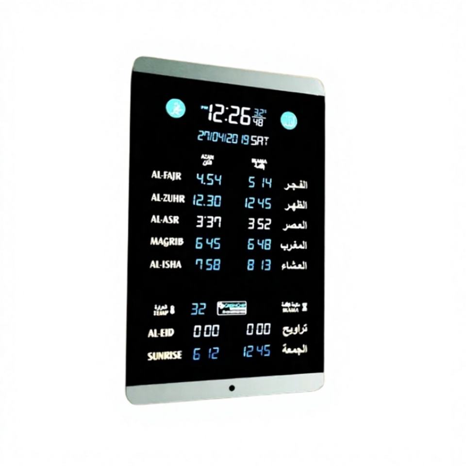 นาฬิกาอะซาน Ummah Connect พร้อมระบบ GPS ระบุตำแหน่งอัตโนมัติ กำลังส่งสัญญาณอะซานสูง ซิงค์การละหมาดตามชุมชน แจ้งเตือนกิจกรรมมัสยิดในพื้นที่ แจ้งเตือนกิจกรรมการกุศลแบบกลุ่ม
