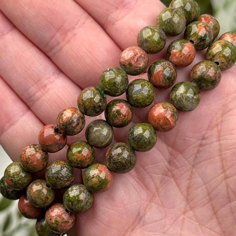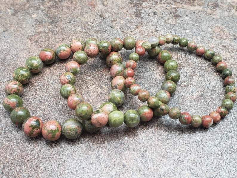 สร้อยข้อมืออูนาไคต์ ลูกปัดคริสตัลยืดได้ สร้อยข้อมือคริสตัลธรรมชาติคุณภาพพรีเมียม เครื่องประดับอัญมณีธรรมชาติ สร้อยข้อมือคริสตัลบำบัด ขายส่งจำนวนมาก