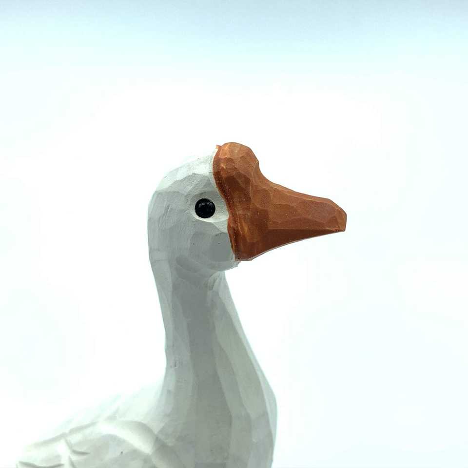 รูปปั้นห่านไม้แกะสลักด้วยมือไม่มีตราสินค้า งานประติมากรรมไม้ ของสะสม