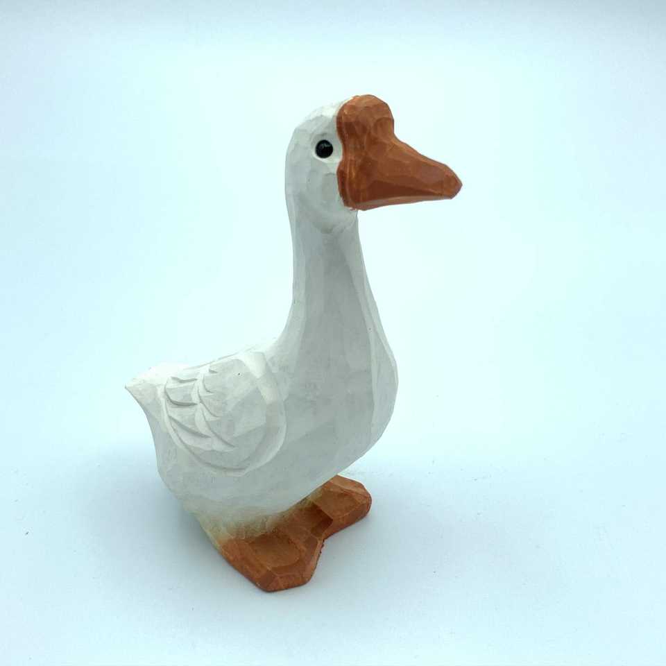 รูปปั้นห่านไม้แกะสลักด้วยมือไม่มีตราสินค้า งานประติมากรรมไม้ ของสะสม