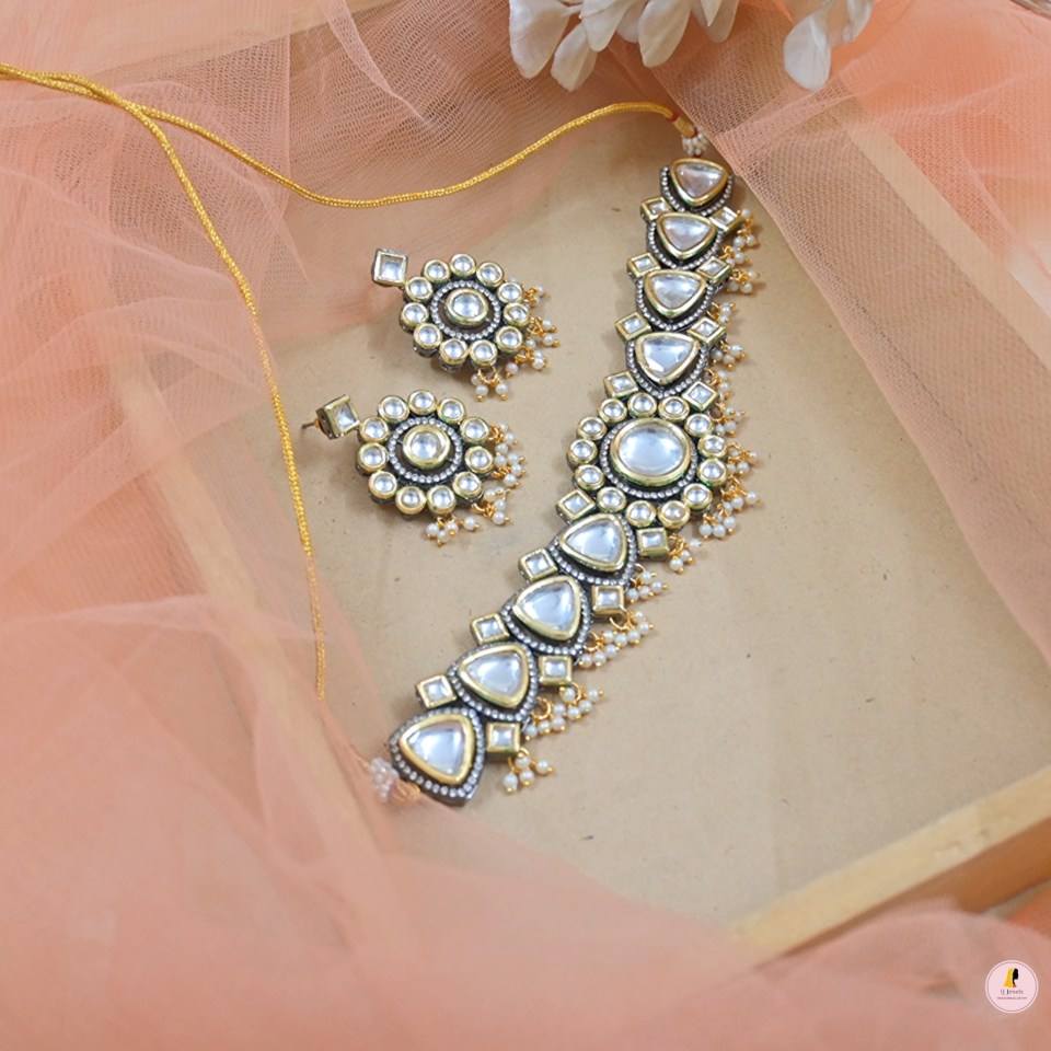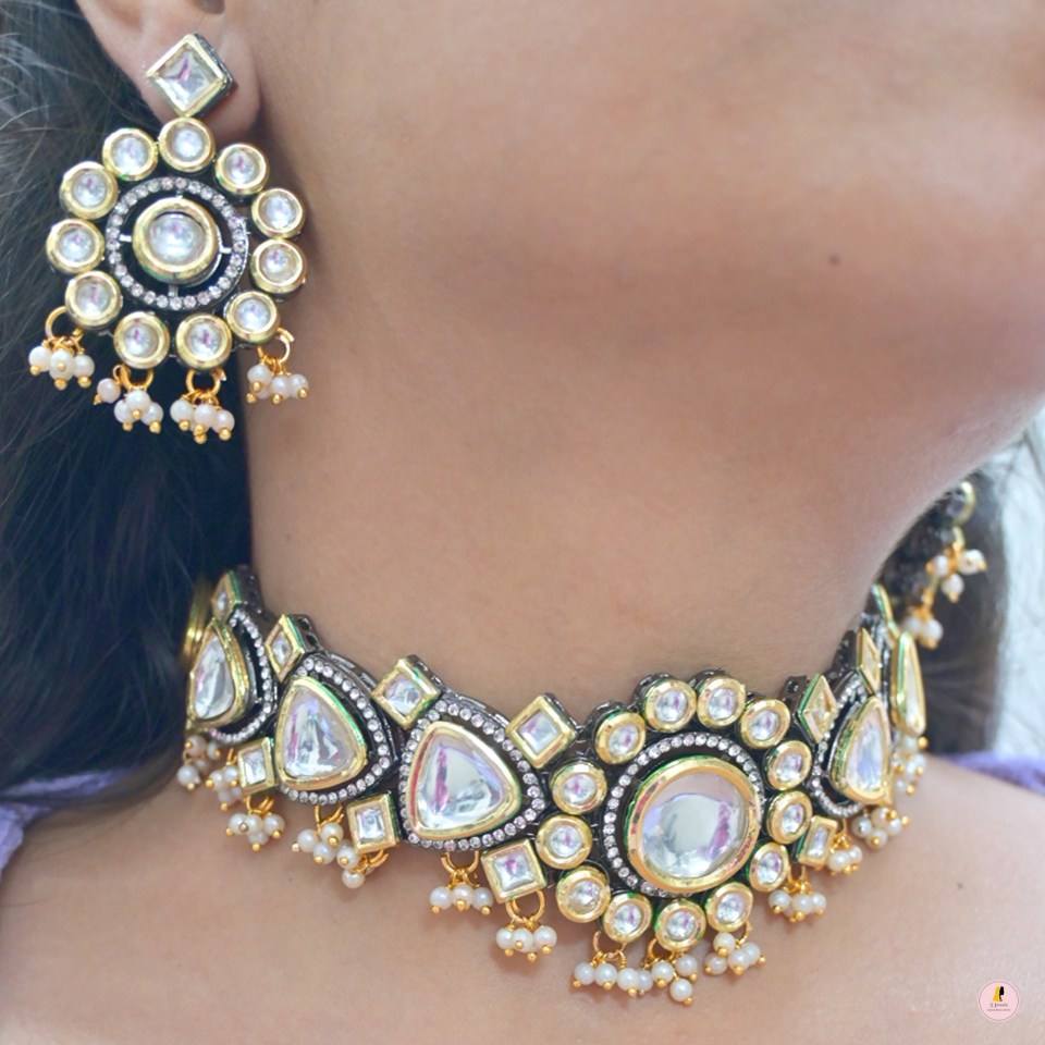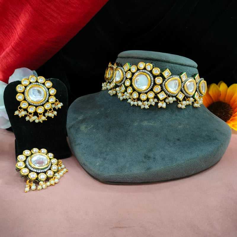 ชุดโชคเกอร์ Kundan แก้วที่ยังไม่ได้เจียระไนมีไข่มุกห้อยน้อยสุดคลาสสิกแต่ทันสมัยเหมาะสำหรับเจ้าสาวและโอกาสที่เร้าใจ