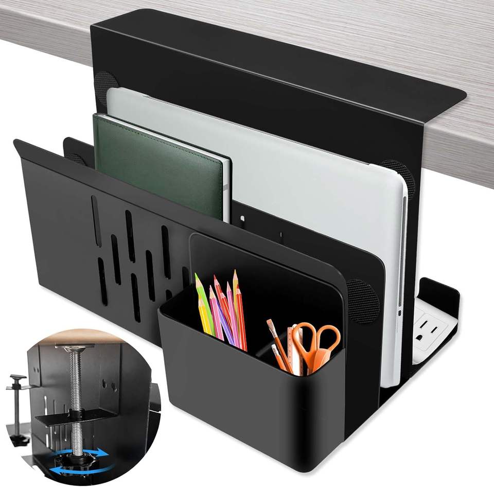 installation type:Hook Type, Laptop Stand Tablet iPad books Holder, Clamp-On Desk Shelf No Drill Desk Side Storage