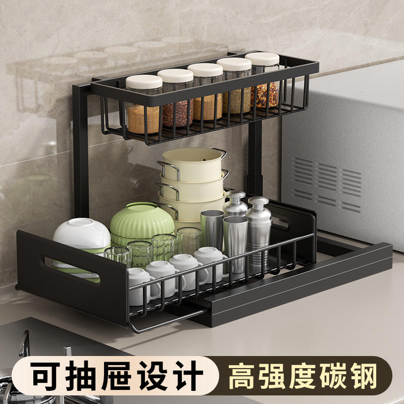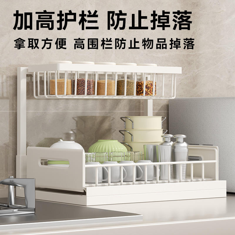 ชั้นวางของใต้ซิงค์แบบลิ้นชักทรงสี่เหลี่ยมรูปตัว L สำหรับจัดระเบียบห้องครัวและห้องน้ำ แบบตั้งพื้น