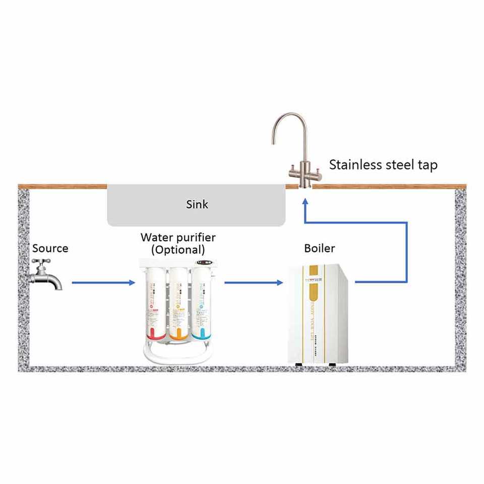 ภายใต้อ่างล้างจานระบบหม้อไอน้ำ