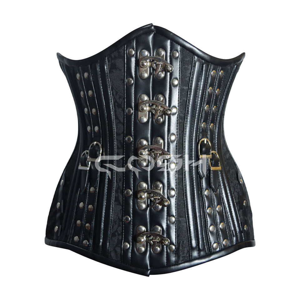 คอร์เซ็ทหนังสีดำเสริมโครงเหล็กใต้หน้าอก