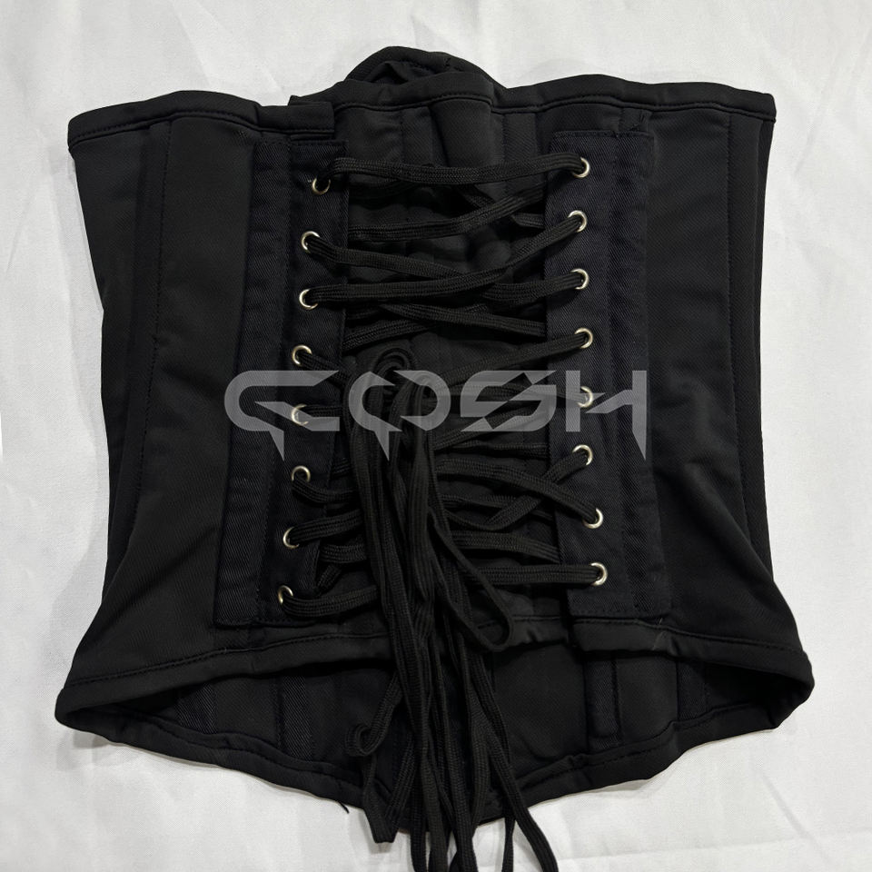 คอร์เซ็ตตาข่ายสีดำระบายอากาศได้ดี โครงเหล็กเสริมใต้หน้าอก พร้อมตัวล็อคด้านหน้า | ซื้อเลย