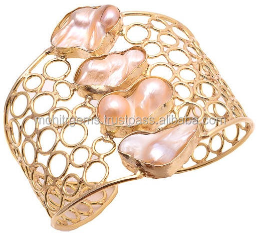 กำไลข้อมือทรงกลมแบบวินเทจ ประดับมุกน้ำจืดทรงไม่สม่ำเสมอ 4 เม็ด พร้อมชุบทอง เหมาะสำหรับงานแต่งงาน งานปาร์ตี้ หรือเป็นของขวัญ