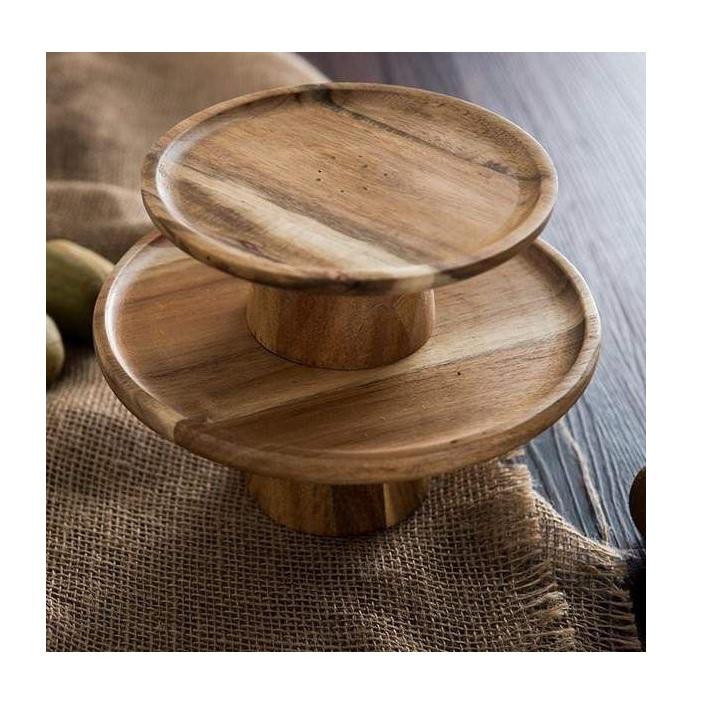 แท่นวางเค้กสำเร็จรูปไม้อะคาเซียมะม่วงยังไม่เสร็จสิ้นดีไซน์ทำด้วยมือเครื่องมือตกแต่งเค้ก2ชั้นรูปทรงกลม